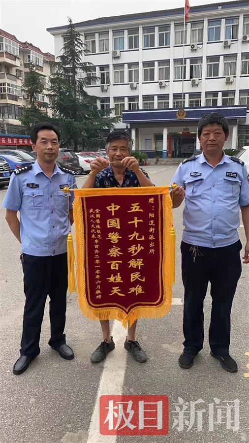 近日,极目新闻记者在武汉市新洲区公安分局阳逻街派出所值班室看到,一面写有“五十九秒解民难 中国警察百姓天”的锦旗,挂在值班室显眼位置。“这是一位群众自带工具,执意挂上去的。”阳逻街派出所所长王军介绍,今年6月,阳逻街一七旬爹爹晚饭后外出散步,不慎将随身携带的老人手机遗失,苦寻无果后向警方求助。所里民警胡红军陪着老人调监控、重走线路,很快将手机找回。