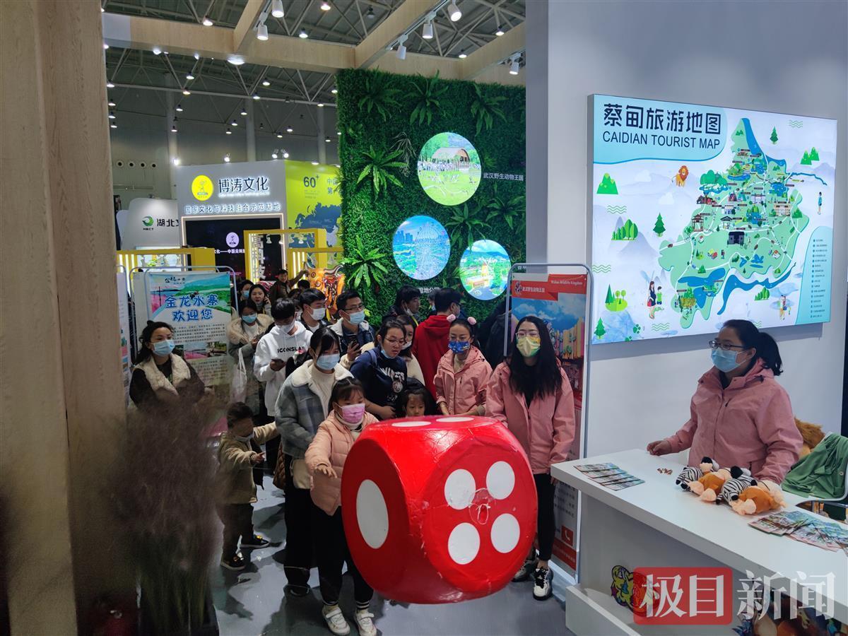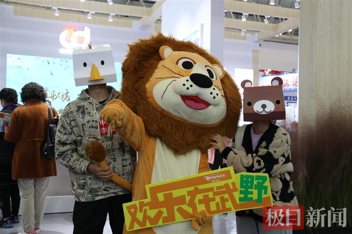“哇,我要和它拍照!”“我中奖了!”在首届中国(武汉)文化旅游博览会蔡甸馆里,武汉野生动物王国的“狮子王”被市民热情的围着拍照,还有不少市民秩序井然的排队玩游戏。