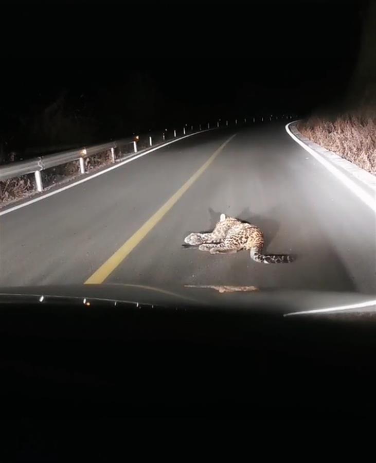 11月28日晚,有网友发表视频介绍了发现金钱豹的过程。该博主称,他原本准备从雅安开车到甘孜新龙县,28日凌晨5时许,在G227国道马路中间发现金钱豹,一开始该网友将车停在远处按喇叭,但躺在路中的金钱豹只是将头抬起后又低下去了,之后该网友给辖区森林公安联系,待当地森林公安和相关救护人员到现场后,他便离去。