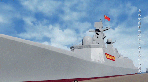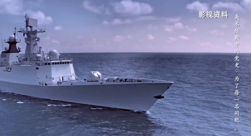 甲板上一排严阵以待的战士,正严密巡视着周边的情况,他们与舰身形成一条斜线,犹如一道坚不可摧的“长城”,守护着每一位中国公民。