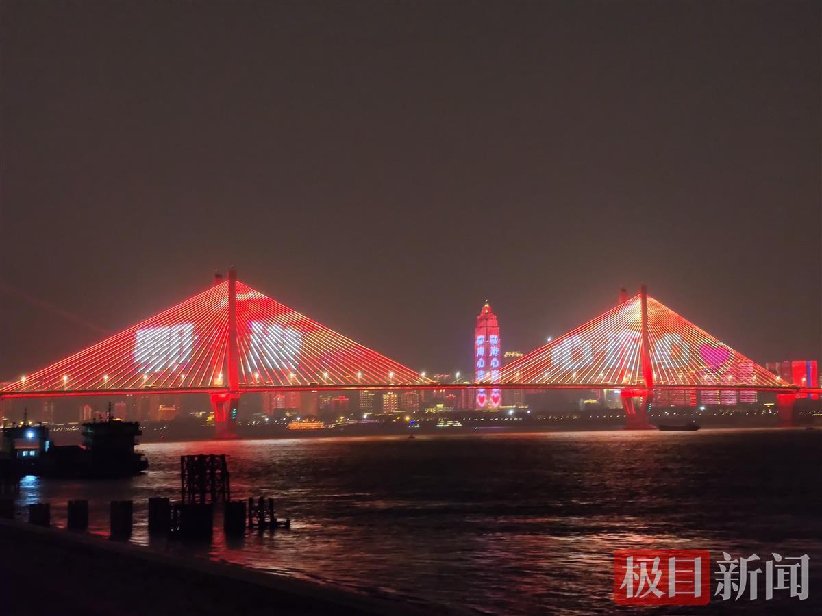 这是林郑月娥首次访问湖北,也是首次夜游武汉,“鄂港携手,合作共赢”“鄂港心连心”等字样闪耀江城夜空,共同见证鄂港友谊。