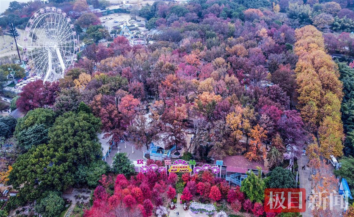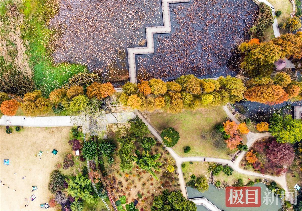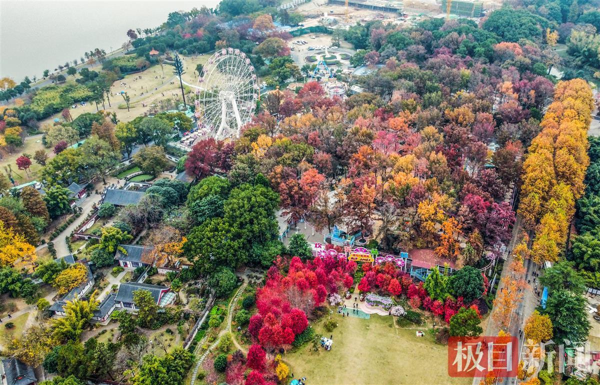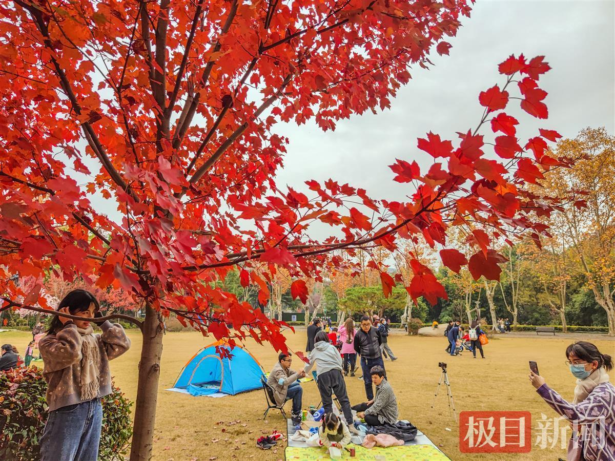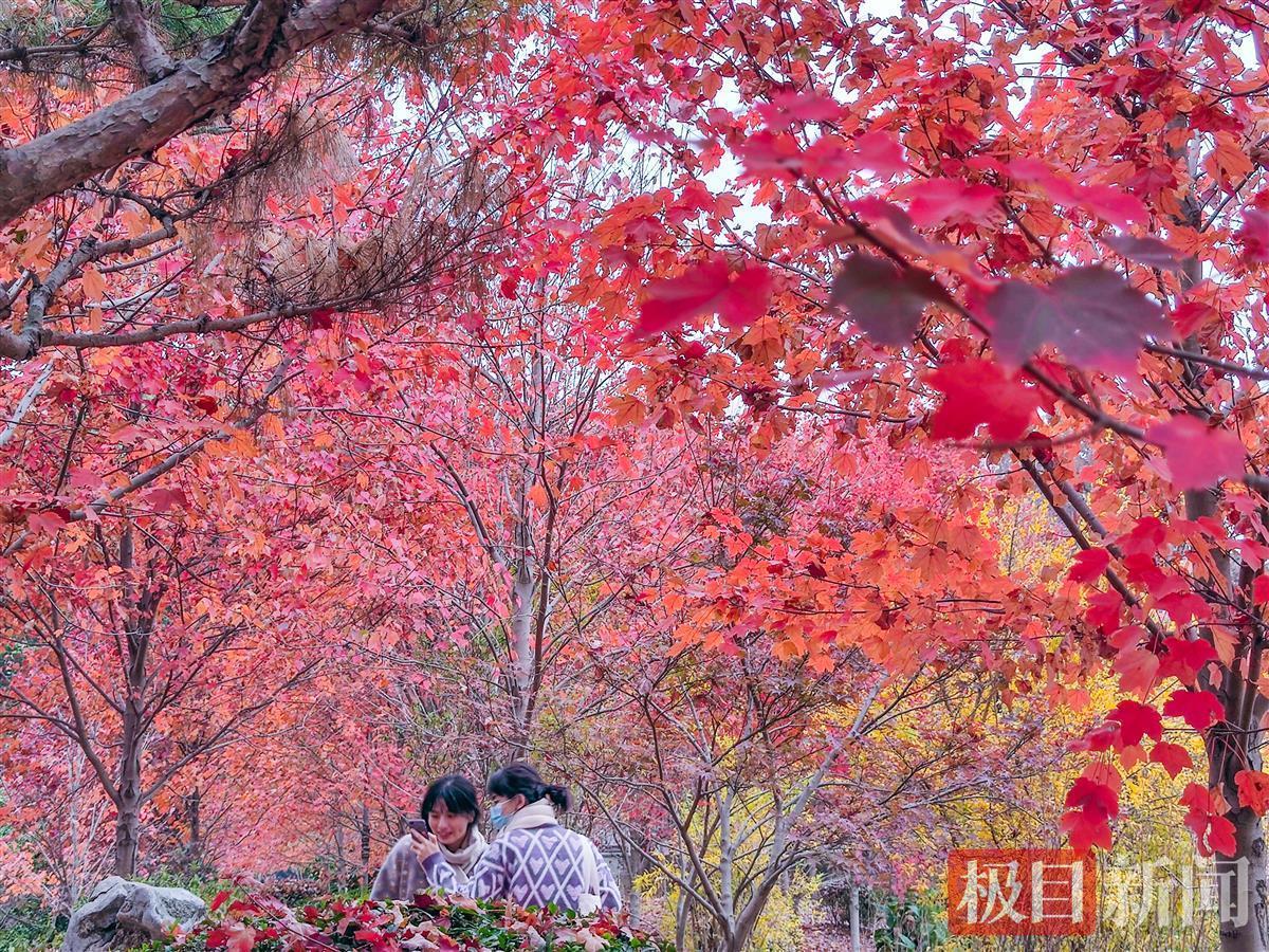 11月29日,东湖景区枫叶网红地,正在冬天的寒冷中艳丽得震撼人心。