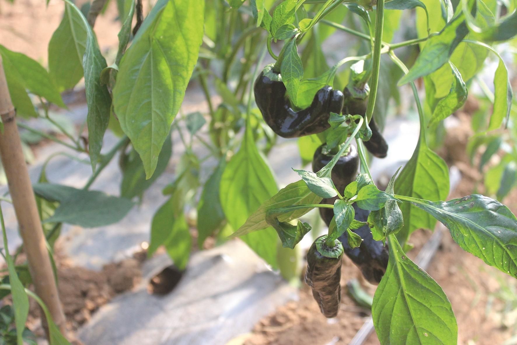 记者看到,乌椒个头和本地辣椒一般大小,早期生长呈青绿色,成熟后通体变成乌黑色,也称“黑辣椒”。田静介绍,乌椒肉薄,辣度适中,含有丰富的维生素等,用来炒肉味道更是一绝。