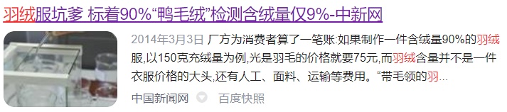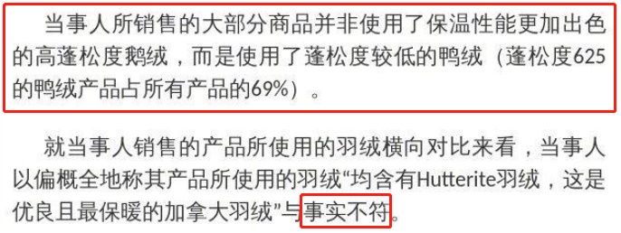 而“加拿大鹅”遭受处罚的最重要原因是挂鹅绒名卖鸭绒,其蓬松度625的鸭绒产品占全部产品的69%。