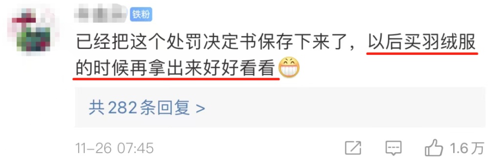 有网友表示,已经把该决定书保存,以后买羽绒服可以做参考了。
