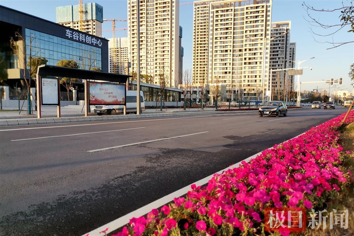 枫林站道路两侧设置花坛,被点缀成了鲜花大道