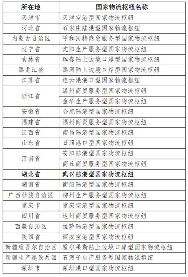 近日,国家发展改革委印发了《关于做好“十四五”首批国家物流枢纽建设工作的通知》,将全国25个枢纽纳入“十四五”首批国家物流枢纽建设名单,把武汉陆港型国家物流枢纽建设成为湖北省首批唯一的一个入选“国家队”。其中,东部地区8个,中部地区6个,西部地区8个,东北地区3个。