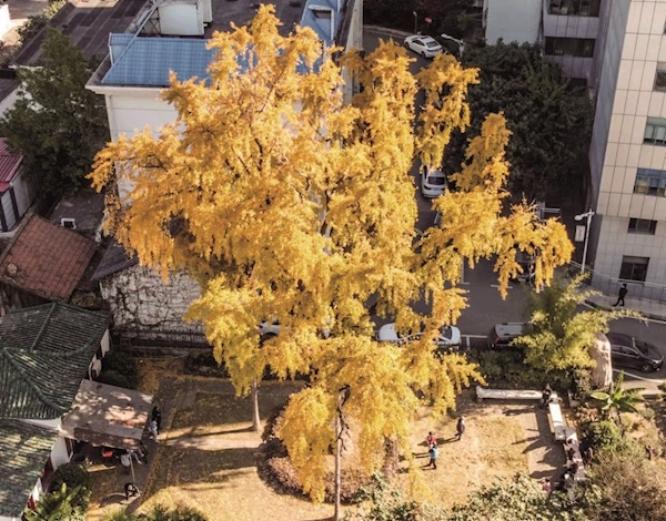 11月最后一天,武汉三环内最年长古树“汉阳树”满树金灿,迎来一年中最华美的巅峰时刻。