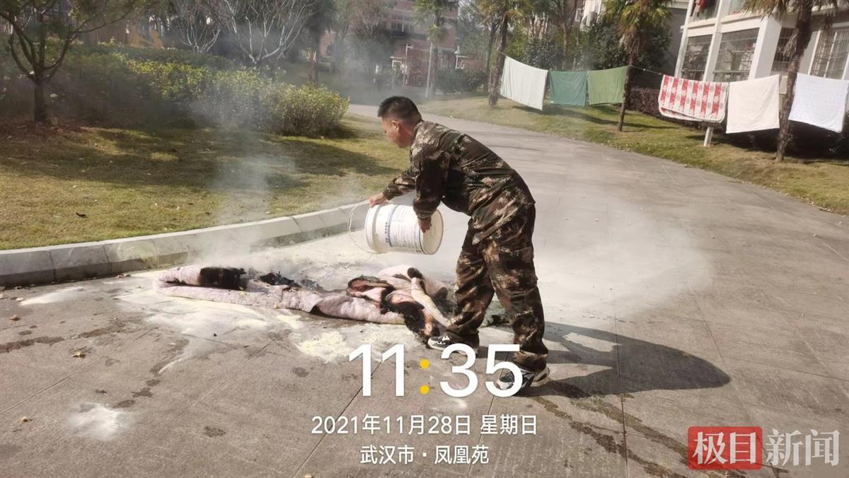 随后,微型消防站工作人员迅速将棉絮上的明火扑灭,及时阻止了一场火灾的发生。“我是建筑工人,爬楼对我来说并不困难。”胡先生告诉极目新闻记者,当场情况非常紧急,他无暇做好充足防护,只想在最短时间内切断火源。