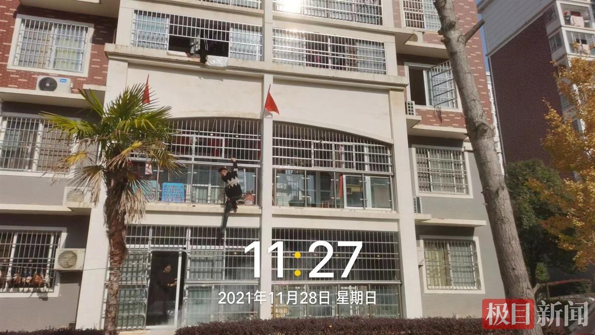 近日,武汉经开区军山街凤凰苑小区一居民家阳台上的棉絮着火,附近一位业主眼看火势越来越大,顺着防盗网徒手爬上三楼,拽下着火的棉絮,众人合力将明火扑灭,及时避免引发火灾。