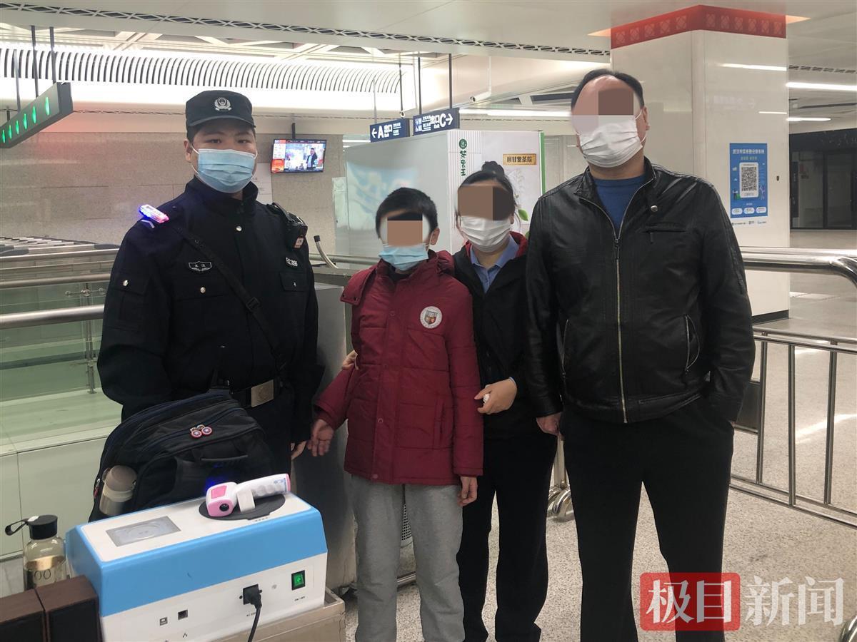 从学校到江夏客厅站足足有8公里,男生全程都是步行,黄家诚赶紧将他带到安检处休息并端来热水。之后,黄家诚问到了男生父母的联系方式,联系上其家长。