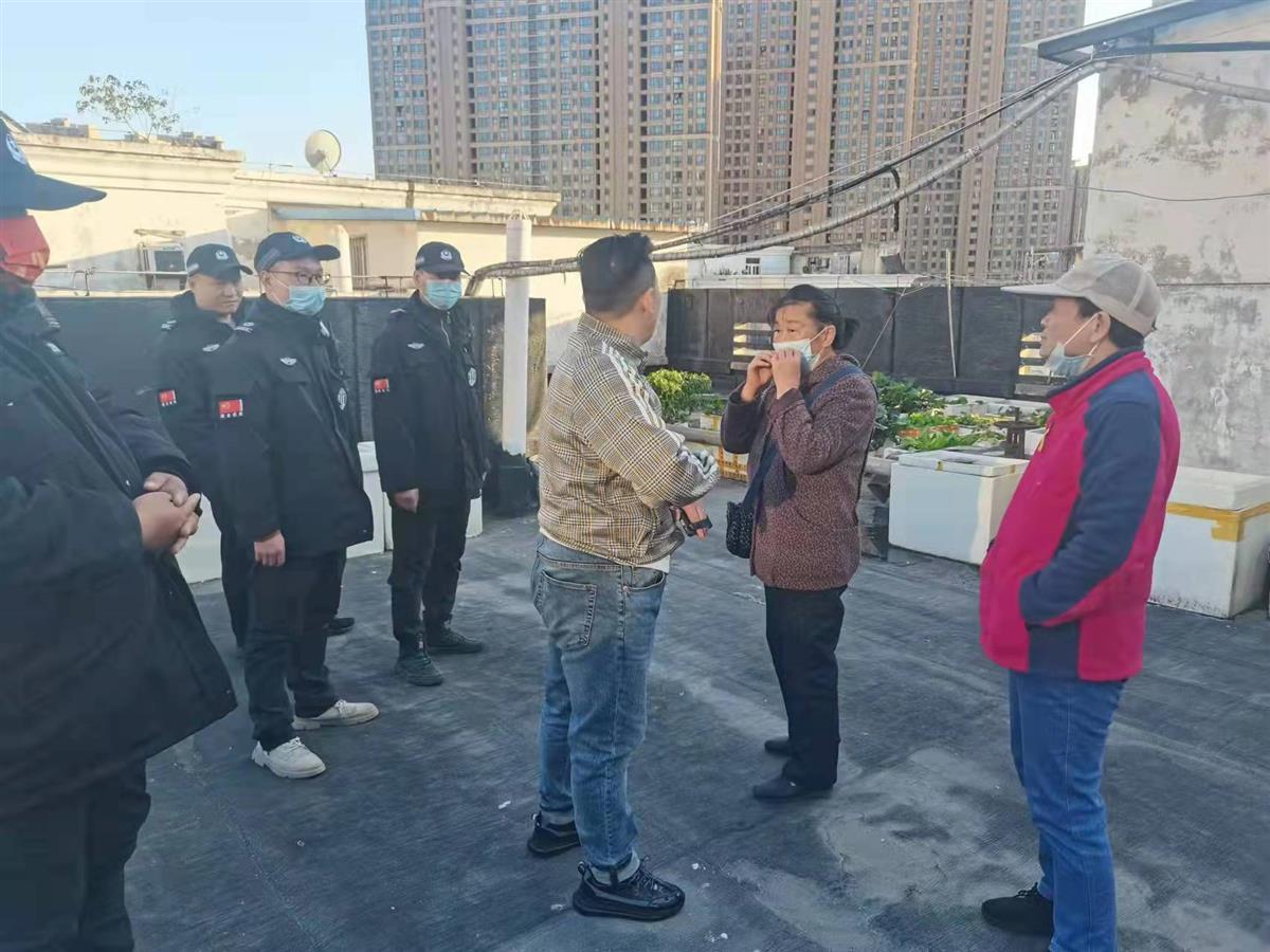 实地查看发现,楼顶种菜面积约10余平方米,20来个大大小小的泡沫盒子种满了青菜,下雨天盆内严重积水,成为了屋顶漏水的源头。为了加快执法进度,街道综合执法中心联动小区物业、种菜业主及张女士在楼顶召开现场协调会,进行“面对面”办公。