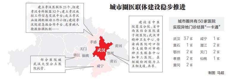 武圈办秘书处工作人员介绍,武汉城市圈正加快医疗服务体系供给侧改革,深化医疗服务贡献机制,完善医疗共享机制,建立血液管理联动机制,完善妇幼保健一体化,推进城市圈社区卫生服务一体化,促进区域内优质医疗资源互通共享。
