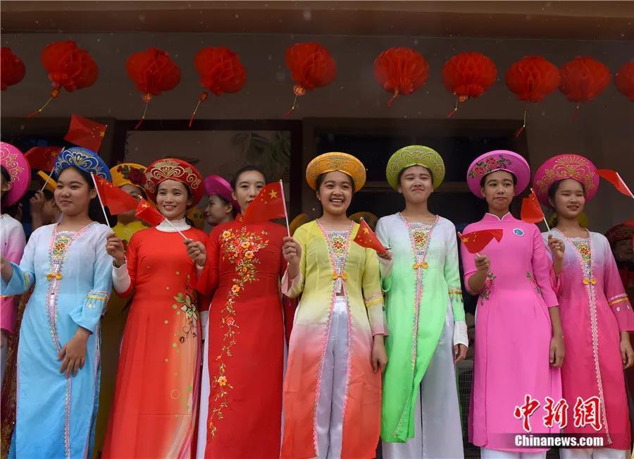 2018年12月,广西东兴市的京族群众庆祝广西壮族自治区成立60周年。中新社记者 侯宇 摄