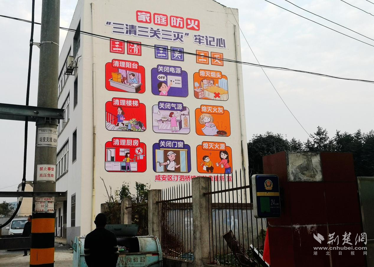荆楚网(湖北日报网)讯(通讯员 朱燕林 刘璇)“119报警早,生命财产损失少”,“119消防队,救火从来不收费......”12月1日,湖北省咸宁市消防救援支队咸安大队在汀泗桥镇开展“我为群众办实事,消防知识进农村”宣传活动,利用移民村民房墙体,精心绘制消防宣传文化墙,打造农村消防“墙头文化”。
