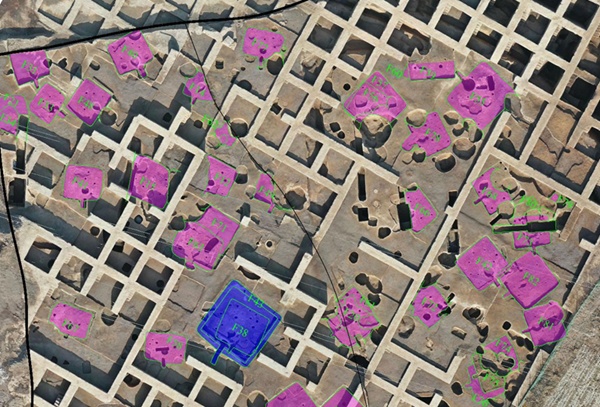 圪垯川遗址从仰韶文化早期延续至仰韶文化晚期,年代距今6100年至5600年。其中仰韶文化早期史家类型时期的大型环壕聚落保存较完好,面积约8万平方米,聚落外围发现三道环壕,中心区为一处广场,围绕广场呈向心状分布三组房屋,共计100余座,每组房屋由1座大房屋(约100平方米)和数量不等的中型房屋(约20-50平方米)、小型房屋(20平方米以下)组成。“这些房屋非常完整、复杂、讲究,对我们来说很震撼。”陈星灿说。