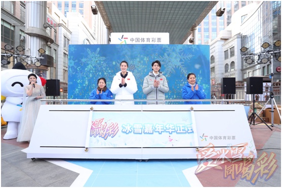奥运冠军惠若琪、击剑运动员孙伟,以及北京体彩筑梦公益小分队等相关代表上台,共同启动了本次活动,“爱冰雪、同喝彩”主题名称亮相。
