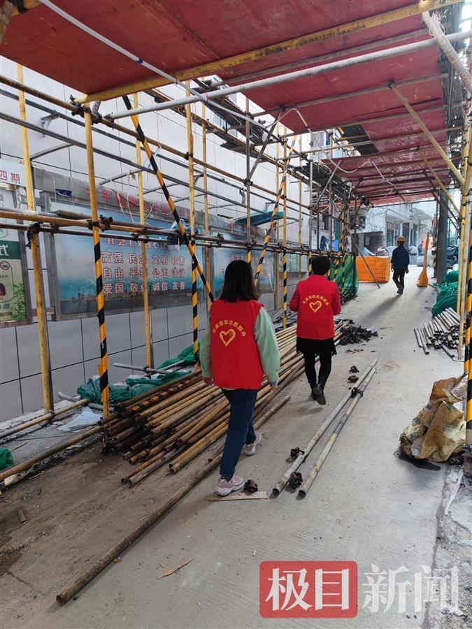 12月1日早上8点,冯玲莉像往常一样,套上红马甲,来到东湖村各老旧小区改造项目施工现场,进行日间的巡逻。