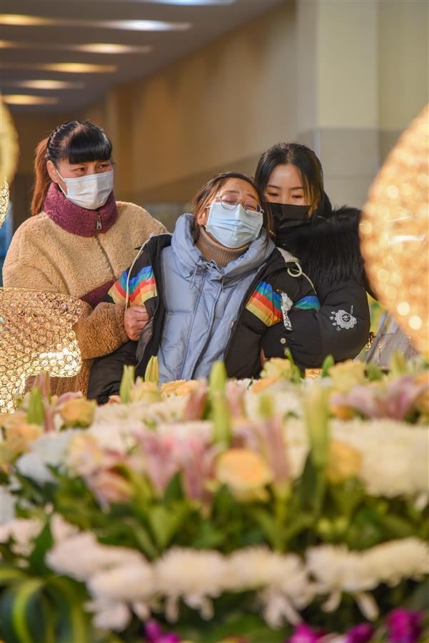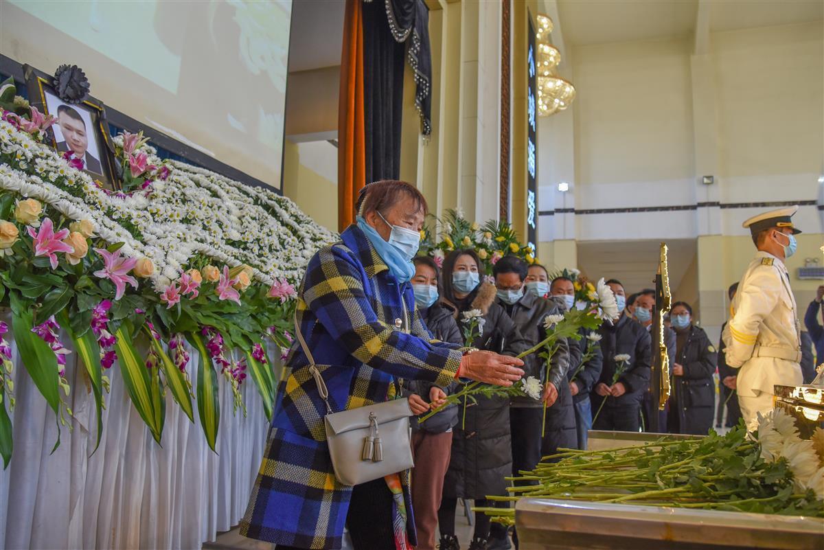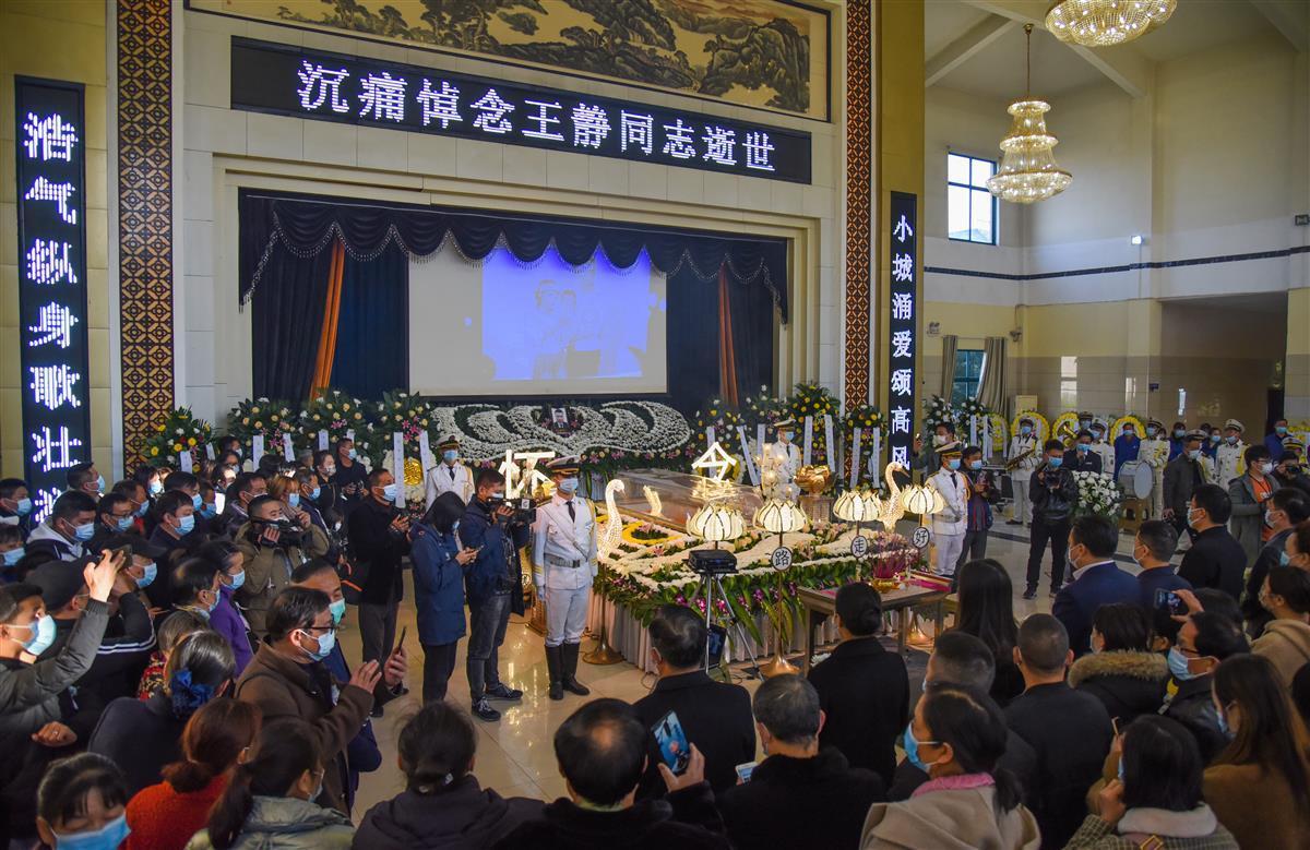 哀乐低回。王静亲属和各界代表绕灵一周,瞻仰王静遗容。王静家人这几天流干的眼泪,再一次夺出眼眶。灵堂中有人低声哽咽,哭泣声渐渐连成一片。眼水流成了河,可再多的泪也抹不去失去至亲挚友的伤痛。王静的父亲侯志东嘴中呼喊着儿子的名字,妻子廖玉香悲痛欲绝,几度情绪失控。