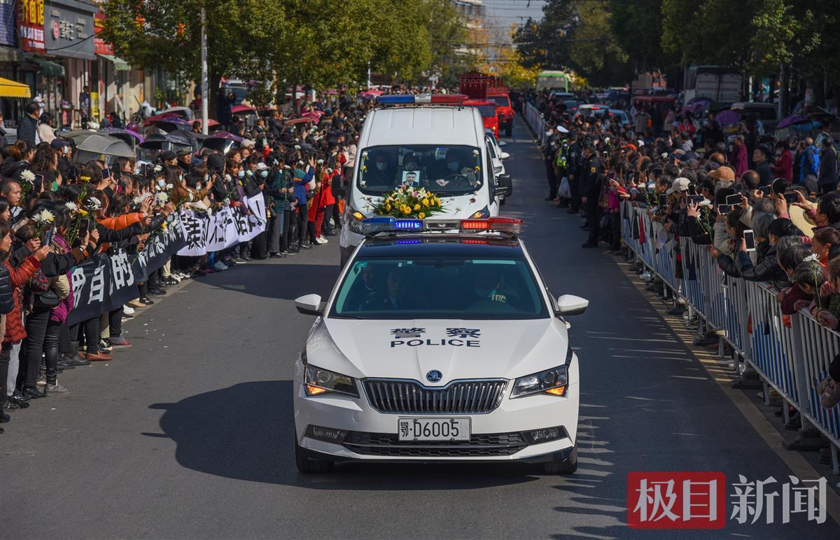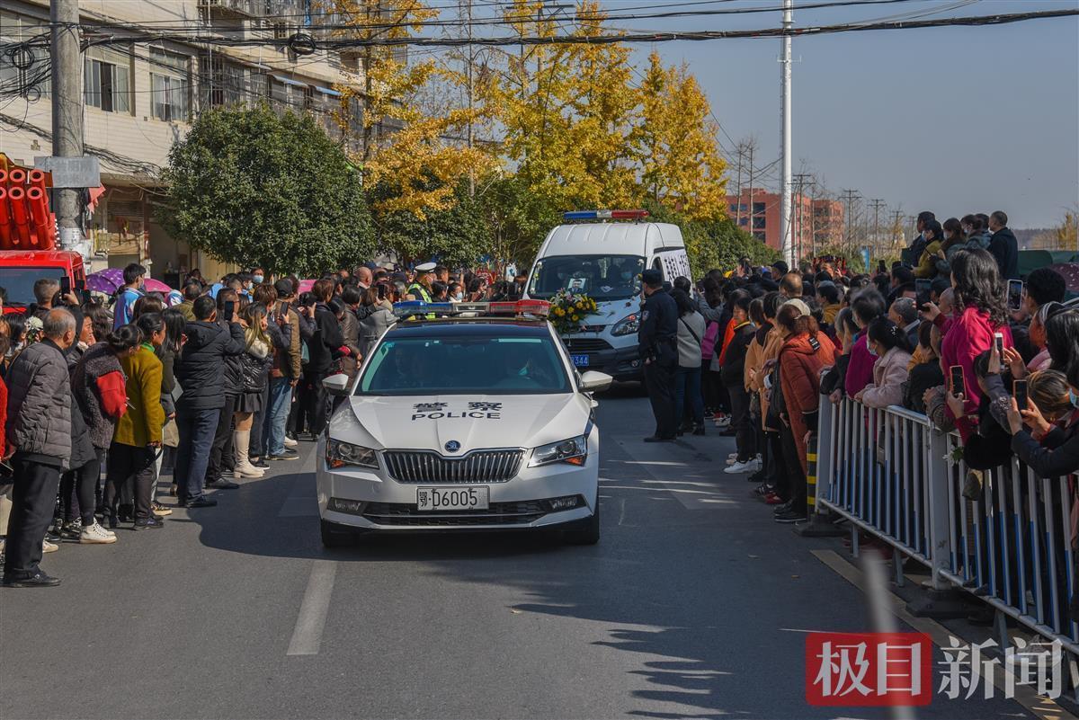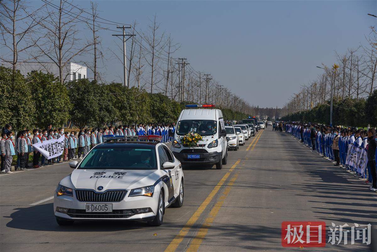 灵车行至向阳大道,这是新沟镇较为繁华的街道,也是王静昔日送外卖最常走的一条路。“小城有大爱,监利好儿男”“舍生壮举,续写大爱精神”……自发前来送别王静的群众站满街道两侧,他们手拉横幅。