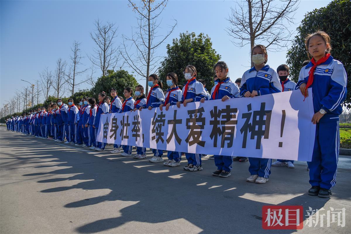 12时30分许,运送王静的灵车来到新沟镇,在途径王静女儿就读的监利思源实验学校时,420多名学生手拉横幅,整齐列队在道路两旁,学生向灵车行注目礼,表达对英雄的崇敬。“身边的英雄,身边的事,这对孩子们的教育是鲜活的素材。”该校校长廖红艳说,将用王静的精神启迪学生,让学生从小崇尚英雄,学习英雄精神。