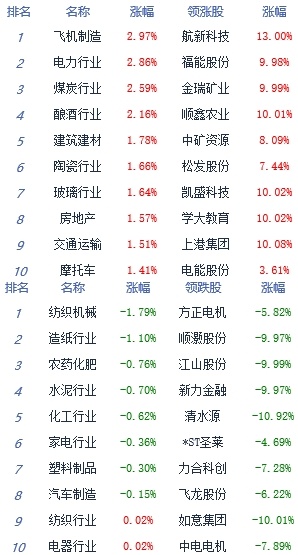 A股市场板块及个股涨跌幅排行