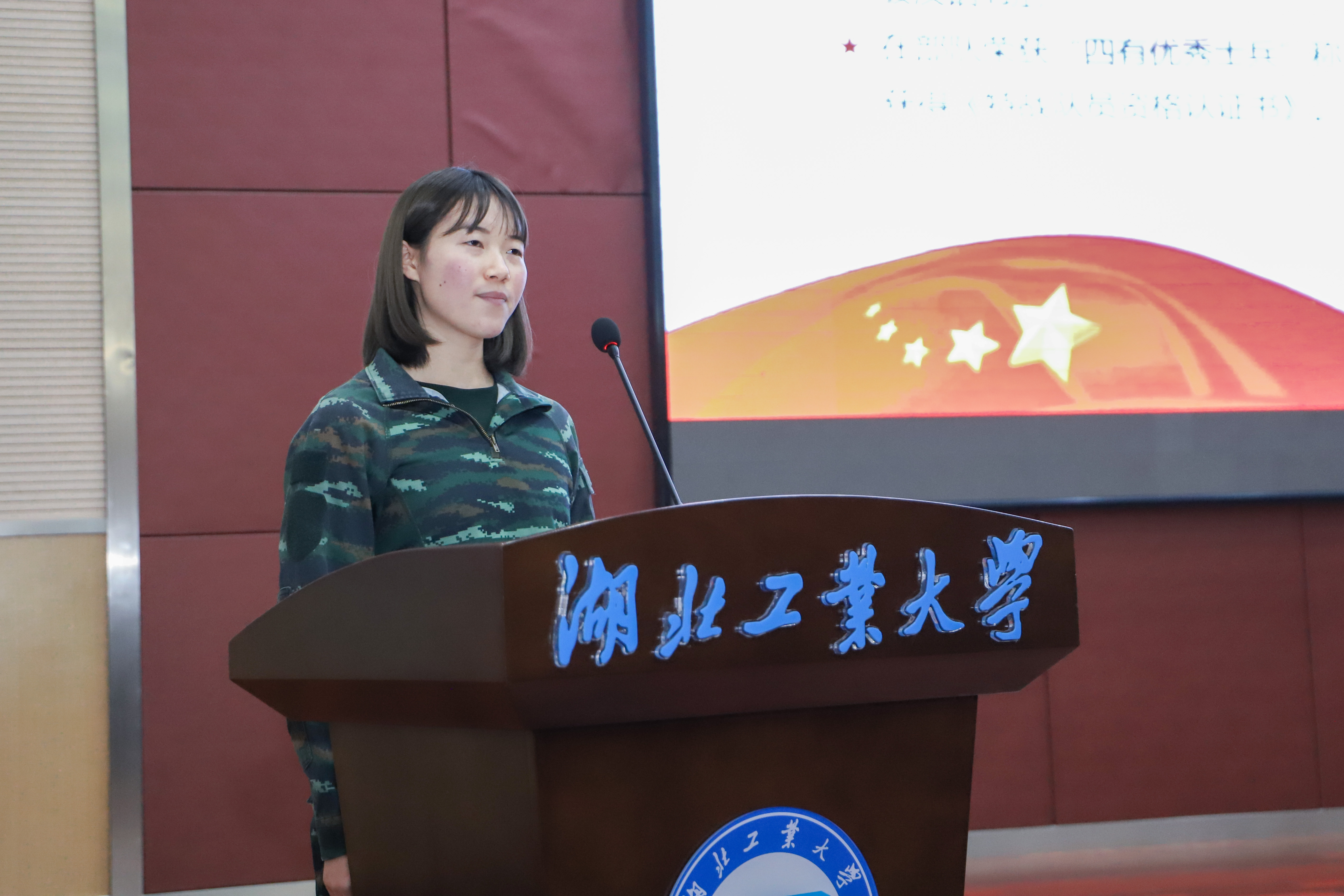 “请党放心,强国有我,若有战,召必回!”12月3日下午,在湖北工业大学2021年退伍大学生军旅成长巡回报告会上,20余名退伍返校大学生代表面对国旗庄严宣誓。他们中12名优秀成员组成宣讲团,其中4名成员为现场百余名学生现身说法,讲述军旅故事,讲解大学生入伍政策,号召大学生们将青春涂上迷彩色,到祖国需要的地方去。