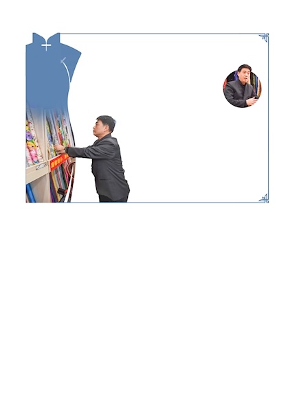 刘伟章的店简洁干净。一千多匹花色材质不同的面料,一台跟随了二十多年的缝纫机,几十条做好的旗袍成品摆放得井井有条。