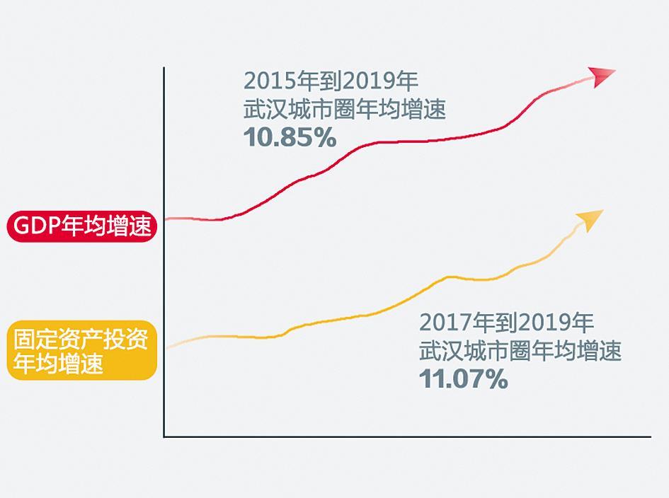 2015年到2019年,武汉城市圈的GDP年均增速为10.85%。今年前三季度,圈内高技术制造业增加值在全省占比72.6%,同比增长40.8%,快于全省5.9个百分点。