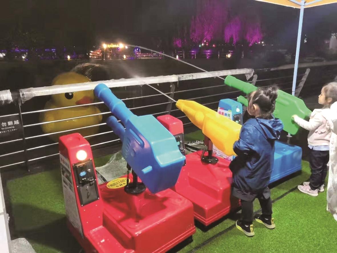 “一次在游乐园排队玩项目时,我看到那种大型的娱乐水枪装置很繁琐且不方便移动,只能在游乐园玩,就想有没有一种方法能够让它更便于移动,变成投币式设备,只要有水的地方,大家都可以去玩。”吴凌智说,“比如那些小城镇或是农村没有游乐园,这个装置就能满足孩子们的娱乐需求。”