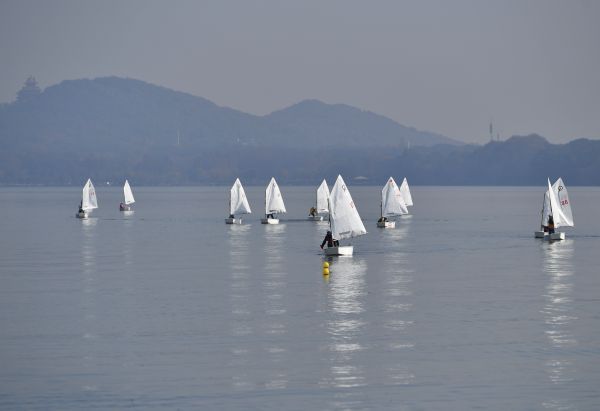 黄珈铭是甲组的第四,10岁半的他在武汉大方学校读书。“我最喜欢的就是在风大的时候,扬帆快速在水面上乘风破浪。”他说,“今天的风有点小,要是风大的话,一下就到湖中心了。”黄珈铭也刚刚练了两个来月,他说学会驾驶帆船并不难,只要经过几次认真的训练就能快速上手。“我觉得最难的不是逆风,而是顺风时船扎水了,顺风时要是坐的位置靠前,船会直接扣下去。”他说,“训练时我就翻过几次船,不过现在应该不会了。驾驶帆船关键是利用好风向,然后每个动作,每个环节都要做到位,少一个动作,或是动作没做好,可能导致你后面全部落后,再也赶不上去了。”经过风浪的小伙子看上去已很老练。