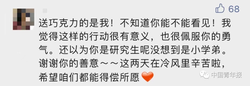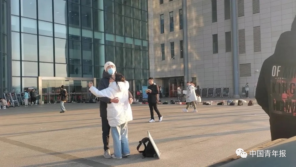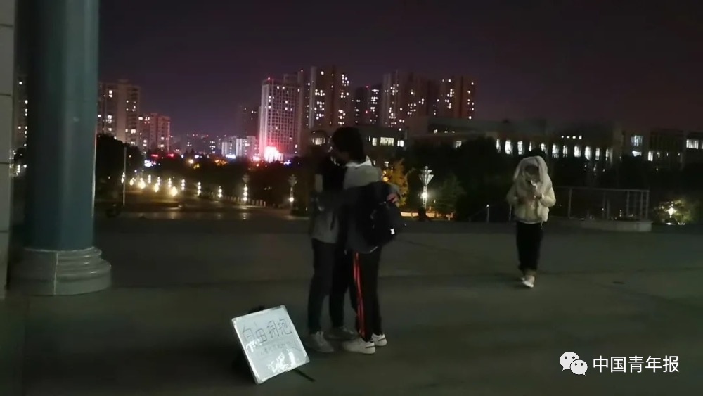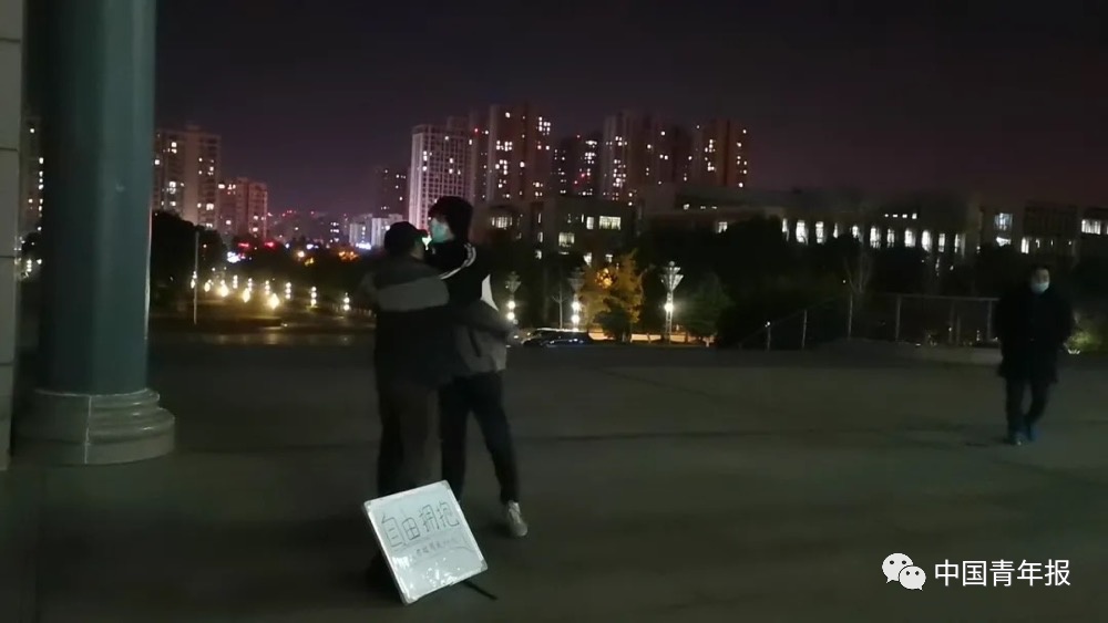 在他犹豫想离开的时候,有个白衣服的女生张开双臂过来抱了他,“那一刻真的真的真的特别感动,真的特别想哭。”