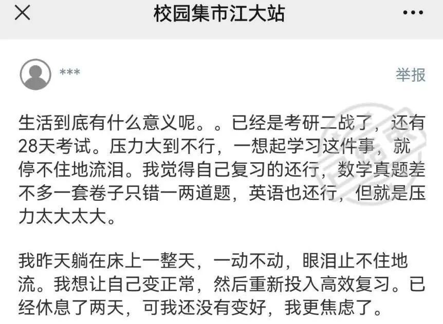 数日前,韩哲在校园网看到一条匿名帖:“生活到底有什么意义呢”“压力大到不行”“一动不动,眼泪止不住地流”......一字一句触动着他。