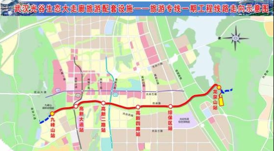 光谷空轨一期工程线路图。(项目名不代表最终车站命名)