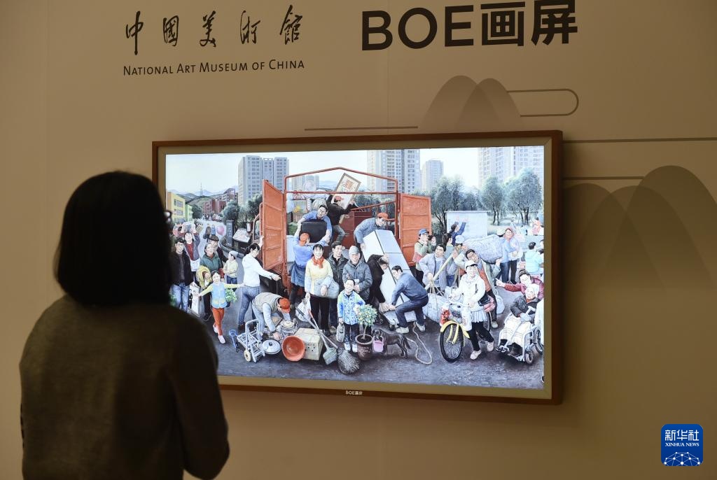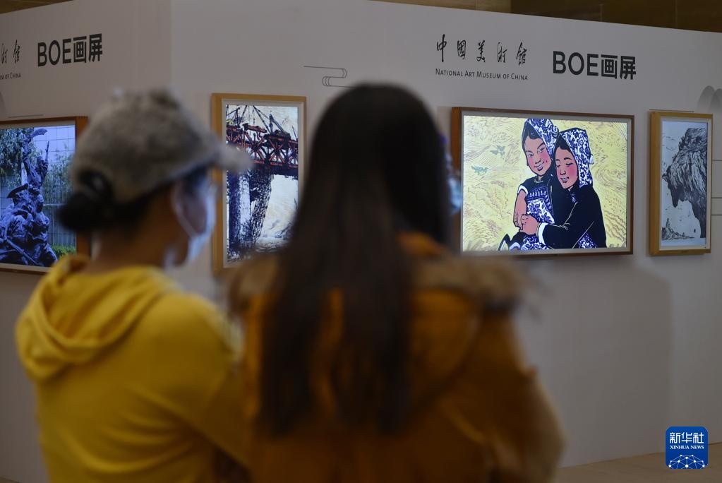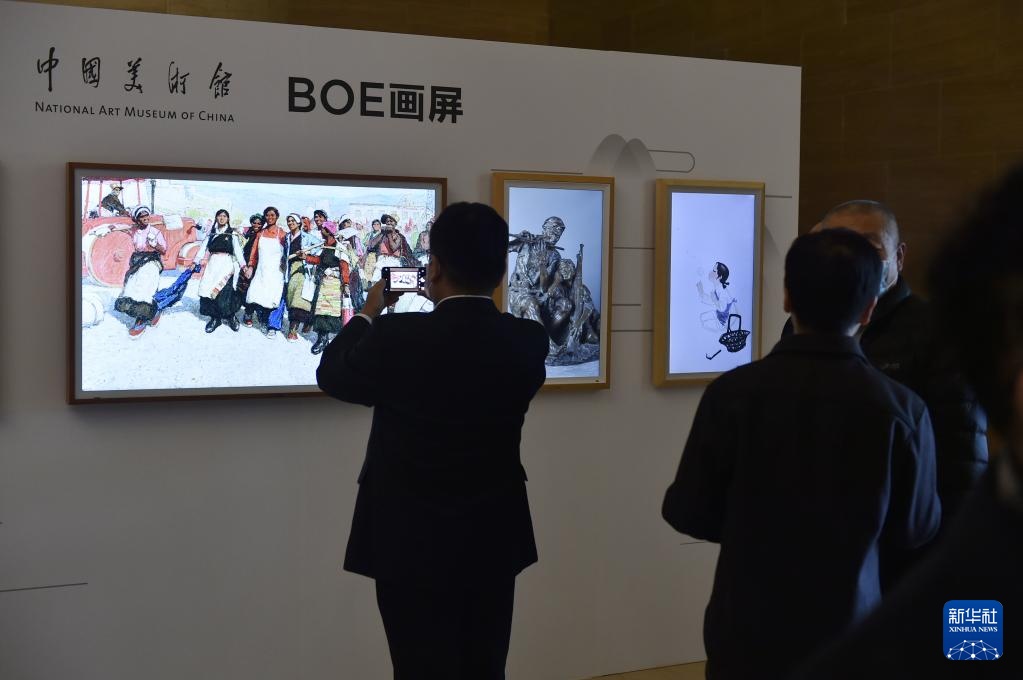 12月6日,观众在中国美术馆参观展览。当日,“百年百幅经典美术作品数字体验展”启动仪式在北京中国美术馆举行。展览以BOE画屏数字艺术显示终端为载体,展出中国美术馆馆藏的百件经典美术作品。新华社记者 鲁鹏 摄