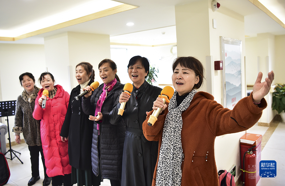 12月6日,老年人在江北区石马河街道养老服务中心进行合唱练习。新华社记者王全超摄