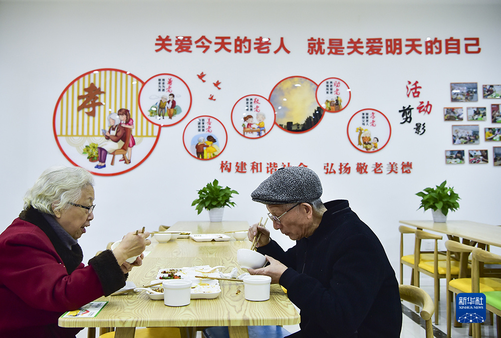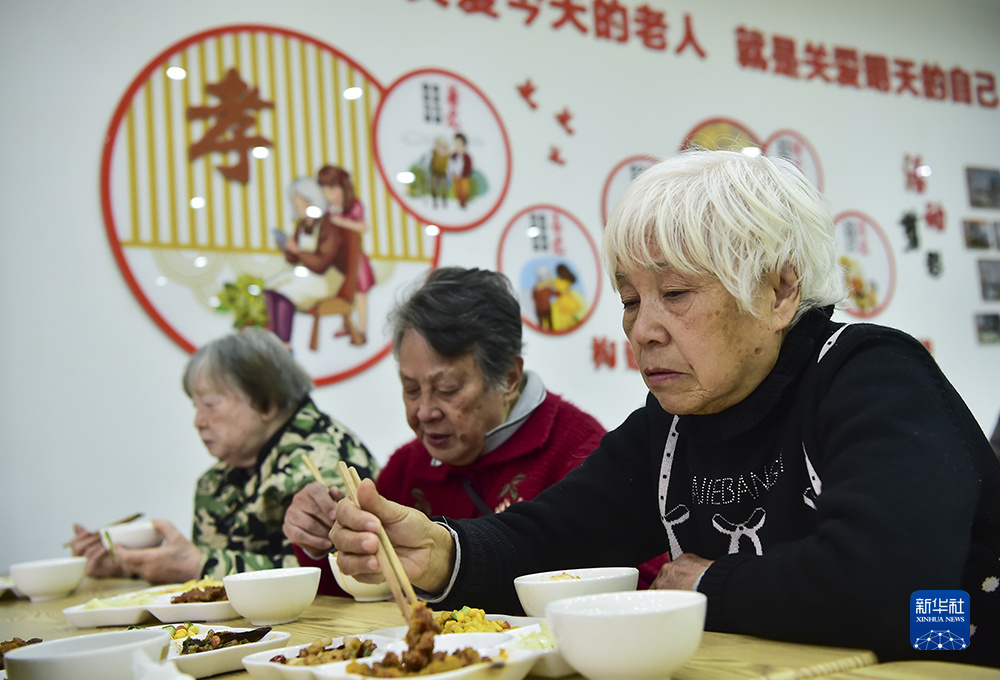 12月6日,老年人在江北区大石坝街道正街社区养老助餐服务站用餐。新华社记者王全超摄