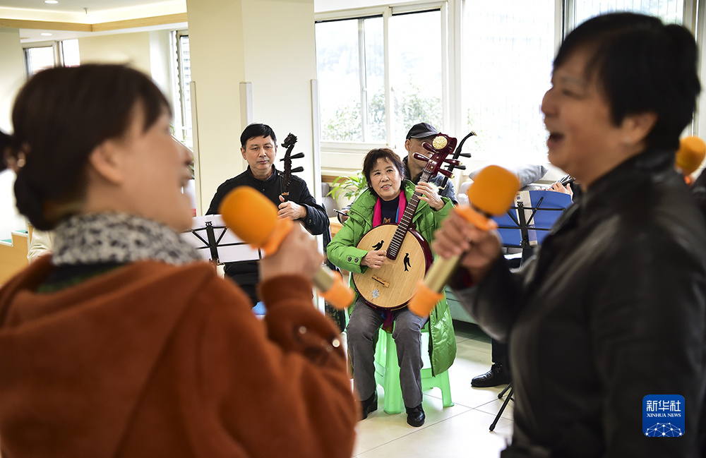 12月6日,老年人在江北区石马河街道养老服务中心进行演奏与合唱练习。新华社记者王全超摄