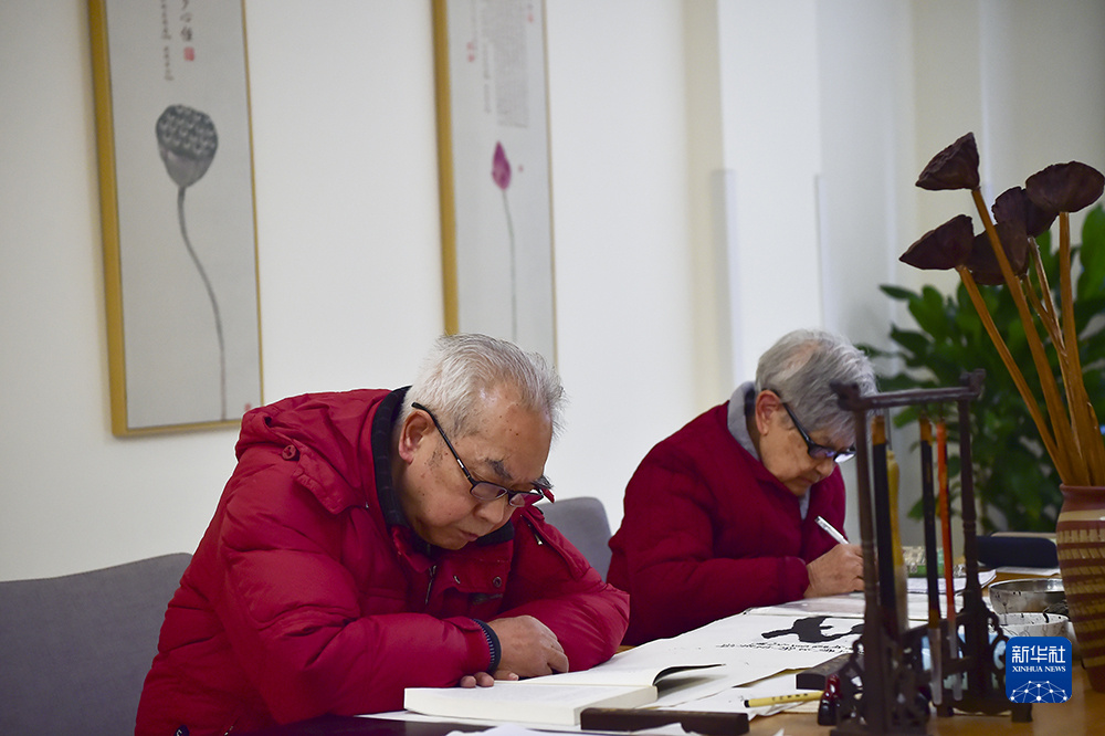 12月6日,老年人在江北区石马河街道养老服务中心进行演奏练习。新华社记者王全超摄