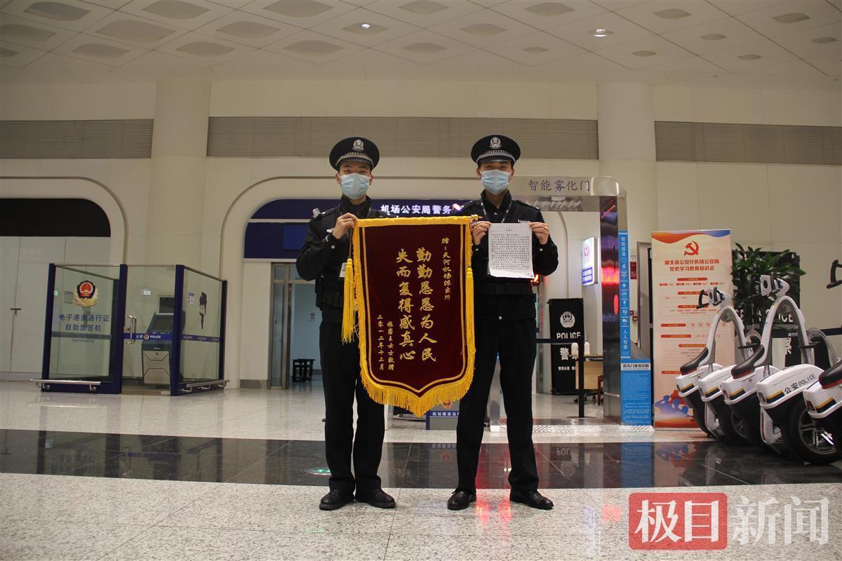 拿着感谢信和锦旗,当日协助寻找笔记本电脑的民辅警都非常高兴,两人都表示:“以后一定会再接再厉,继续在岗位上发光发热,多为群众办实事,让旅客在天河机场平安顺利出行!”