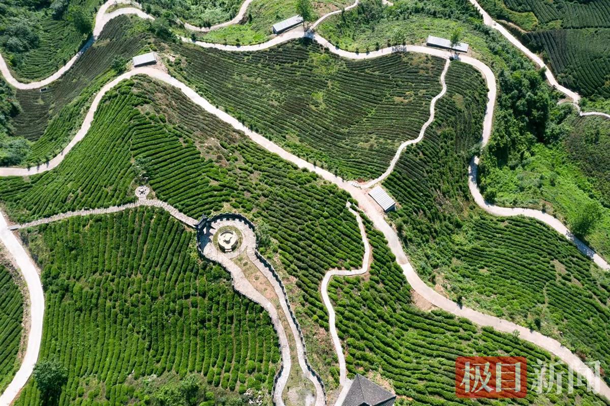 顺着五山镇七坪村山下一路乘车蜿蜒朝上,数千亩茶园尽收眼底。