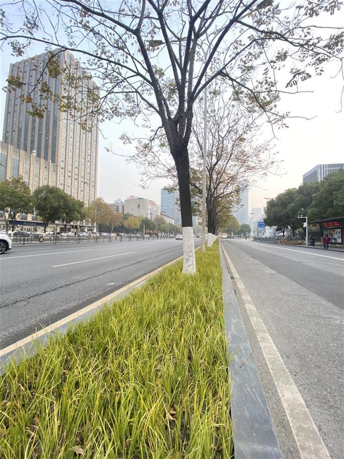 上周日,市民杨先生开车路过汉口青年路时,发现园林师傅们往绿化带里丢了很多包黑色的土。今天再路过时,发现道路画风已上新了:绿化带里,有的是一片火红的南天竹,带给大家冬日里的温暖,有的是一片清新的金色石菖蒲,还有的是一片青葱绿草。