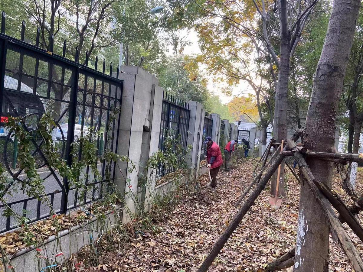 汉阳园林部门给锦绣长江小区院墙栽植爬藤月季