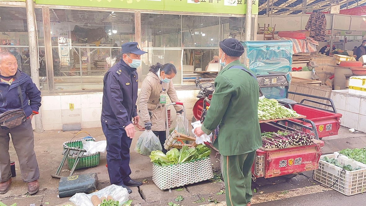 7日,吴志成带领队员对菜农们柔性劝导,引导他们不要占道经营。经过一番劝导,现场立即有十余位菜农同意入市卖菜。城管队员便帮忙拎菜篮子,护送他们进入菜场摆摊。市场方当即安排好摊位,并承诺免收摊位费。