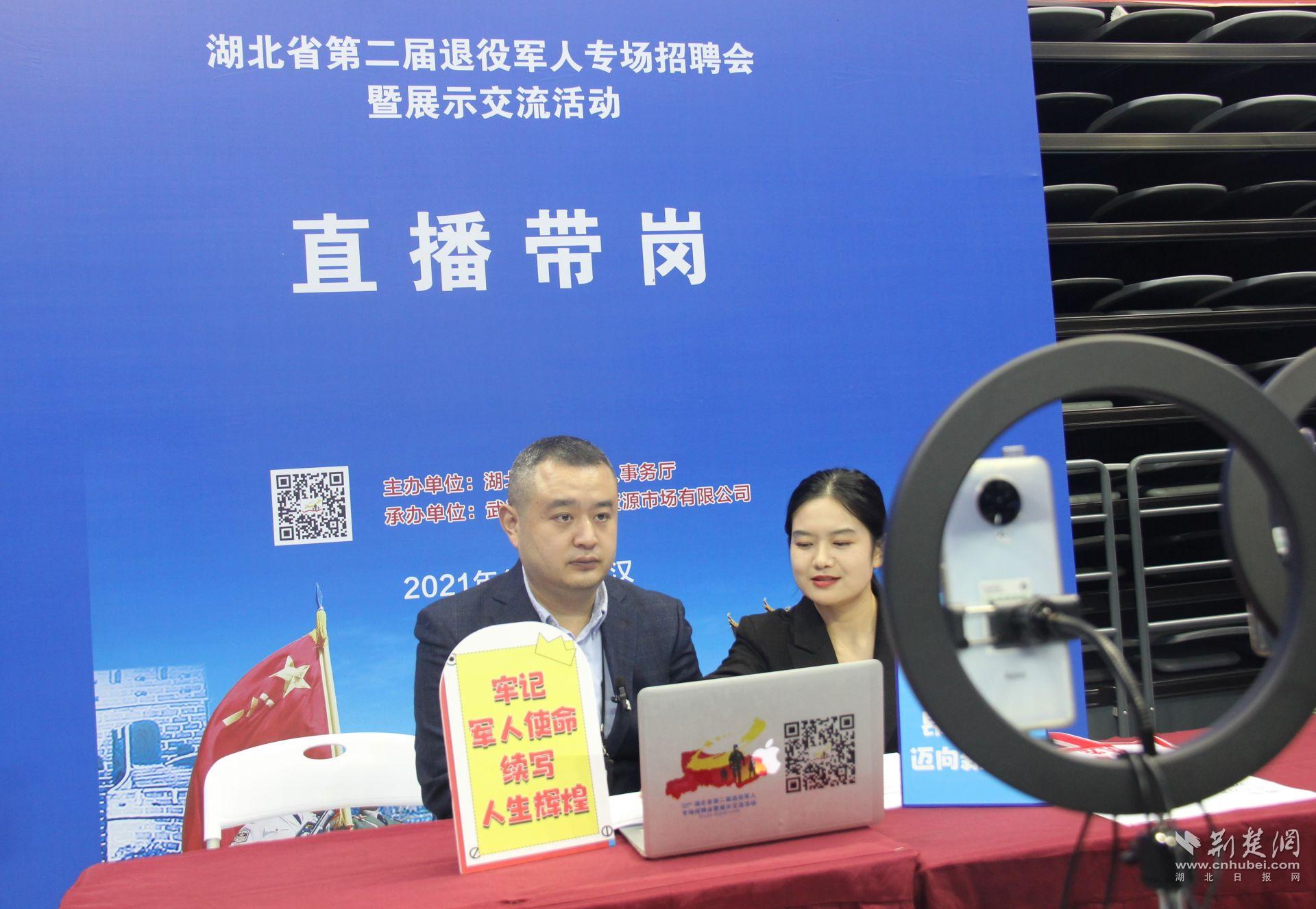 “下面来到我们直播间的是美的集团武汉制冷设备有限公司的招聘负责人,请您为我们介绍一下美的公司招聘的岗位情况……”为了最大限度让企业与退役军人精准对接,活动现场设置了“直播带岗”环节,招聘负责人在直播间与退役军人面对面就岗位属性、任职条件、福利待遇等问题进行解答沟通。