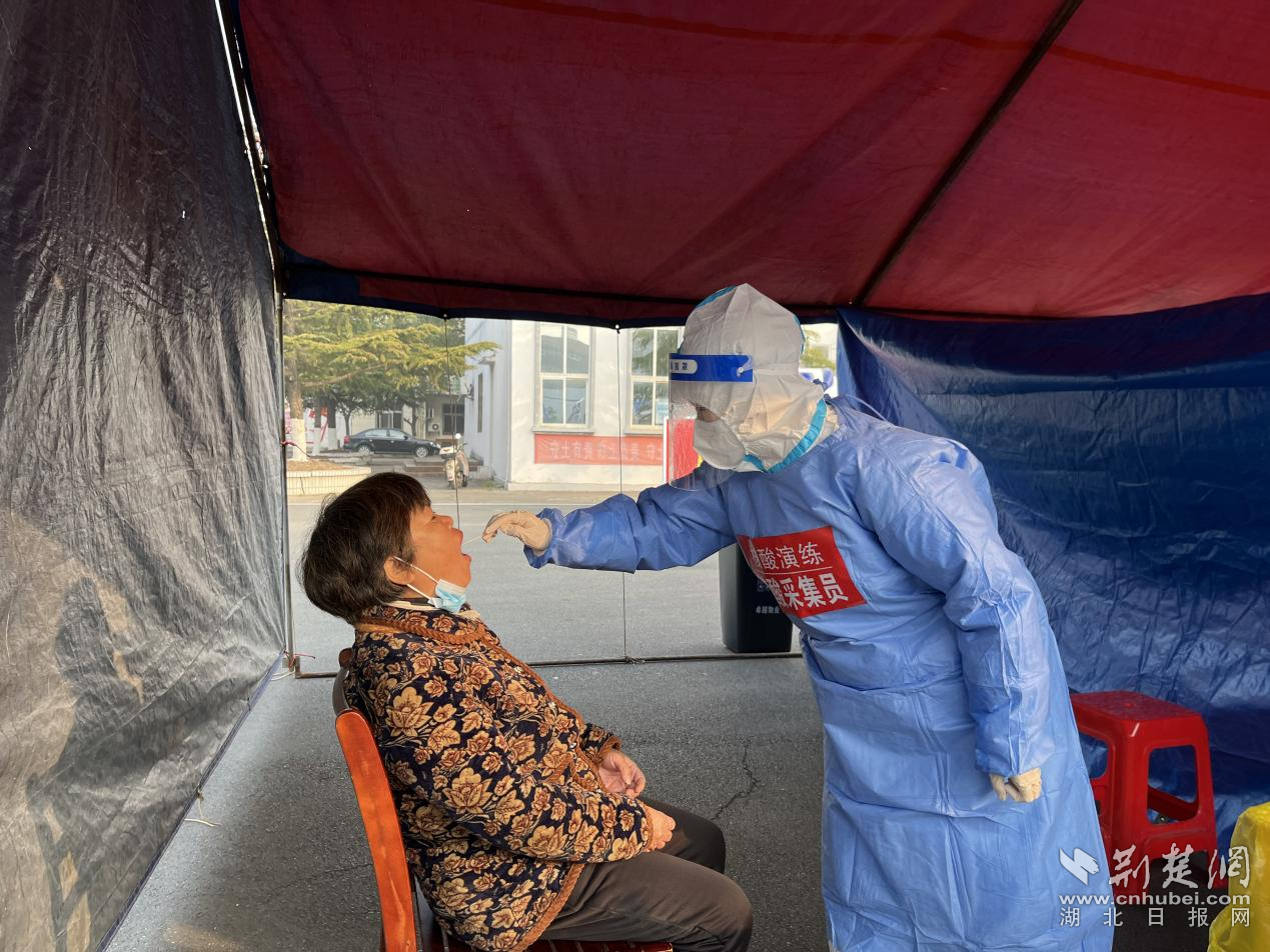 荆楚网(湖北日报网)讯(通讯员夏恬妞)“请大家保持1米以上距离,戴口罩,有序排队”。12月9日上午,在倒店乡政府大院内,正在开展一场全民核酸检测演练。