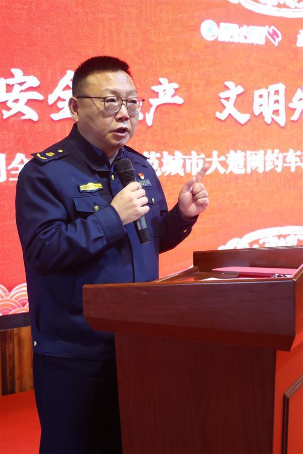 会上,宜昌市道路交通综合执法支队出租车客运大队大队长刘念带领大家一起学习了政策法规,并要求网约车进一步规范经营行为、改善服务质量、提高文明水平,为广大人民群众提供文明、安全、舒适的出行服务,为宜昌市争创全国文明典范城市增光添彩。
