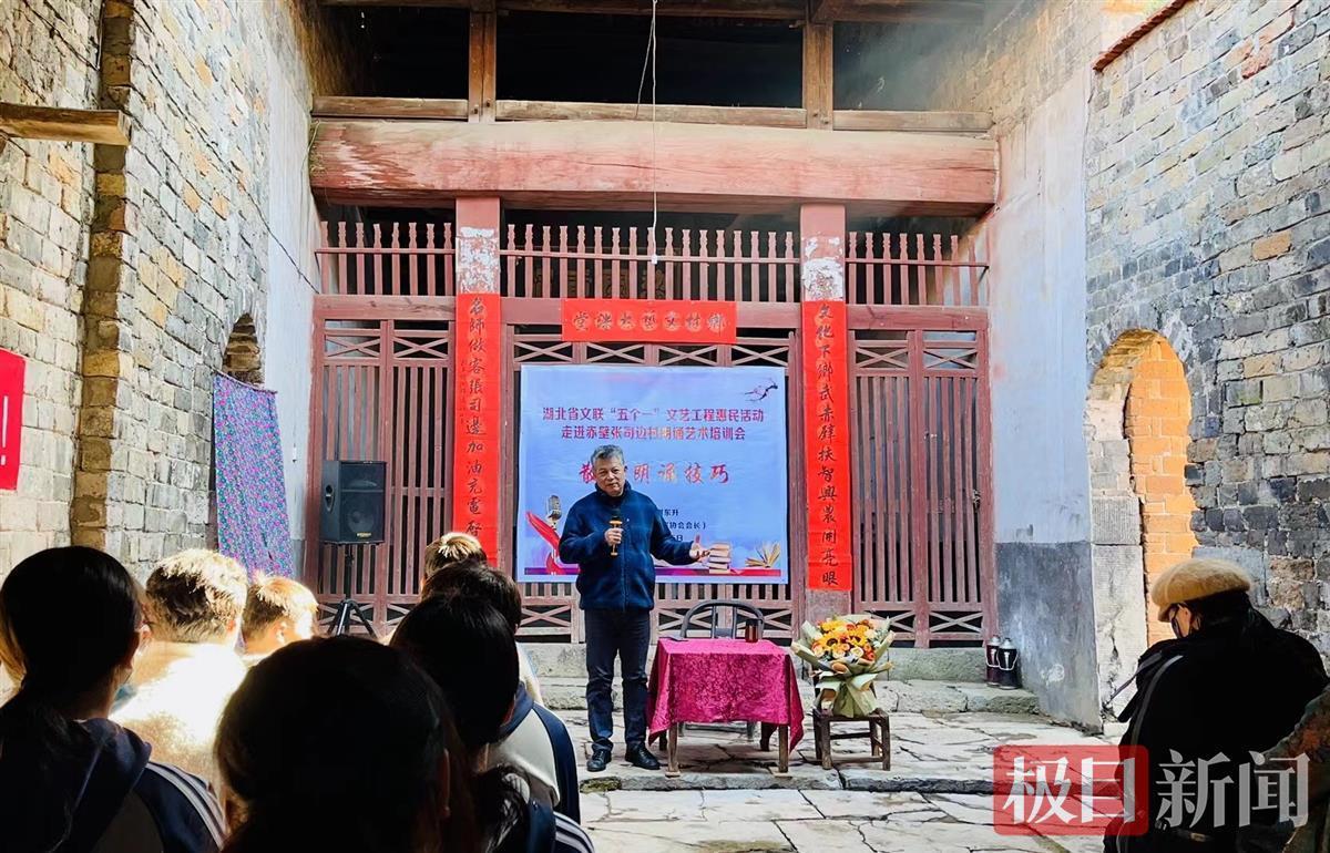 12月5日,湖北省文联“五个一”文艺工程惠民演出走进赤壁张司边村。暖阳之下,由湖北文艺志愿者带来的精品演出,让平日辛勤劳作的村民们因一个“文艺的周末”而笑逐颜开。