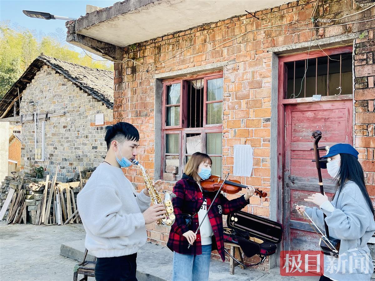 村民郑玉敏带着三个孩子,和婆婆一起前来观看演出,女儿余诗韵、余若彤说她们最爱看器乐三重奏,6岁大的小儿子余君喆跳起来笑道,他爱看杂技《力量》。他们告诉极目新闻记者,在家门口就能看到这么丰富多彩的文艺演出,幸福感满满。
