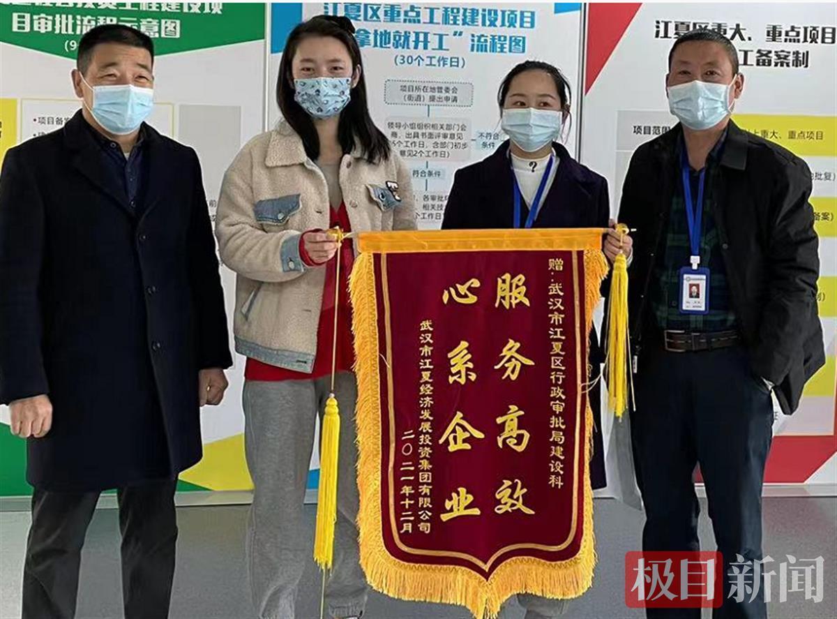 “服务高效,心系企业”。12月7日,武汉市江夏经济发展投资集团有限公司党委委员及副总工李鸿斌等一行人专程到江夏市民之家三楼为江夏区行政审批局建设科赠送一面感谢锦旗,对江夏区行政审批局建设科工作人员一心为企的“店小二”服务表示由衷感谢。